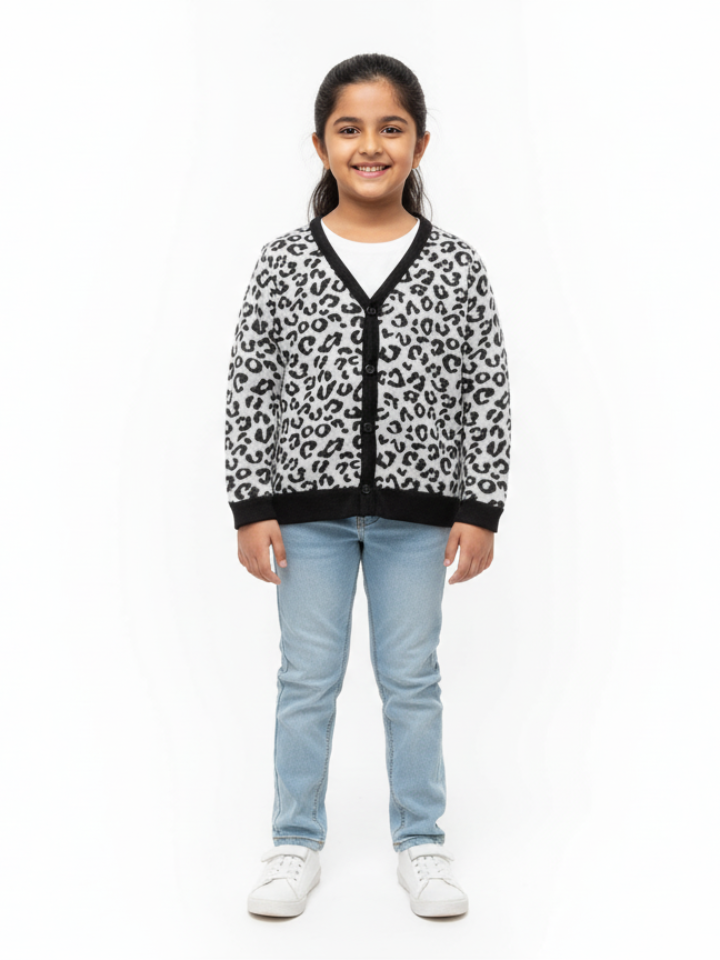 Cozy Leopard Print Cardigan for Kids (7-8 Years)