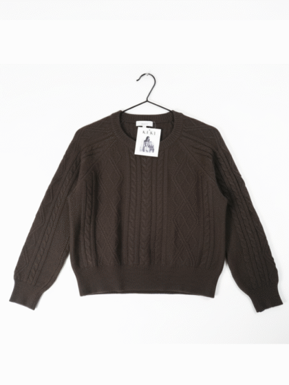 Heritage Dark Brown Cable Knit Crewneck Sweater for Women