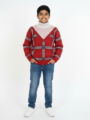 - Color: Rich Red Plaid with Grey Collar.