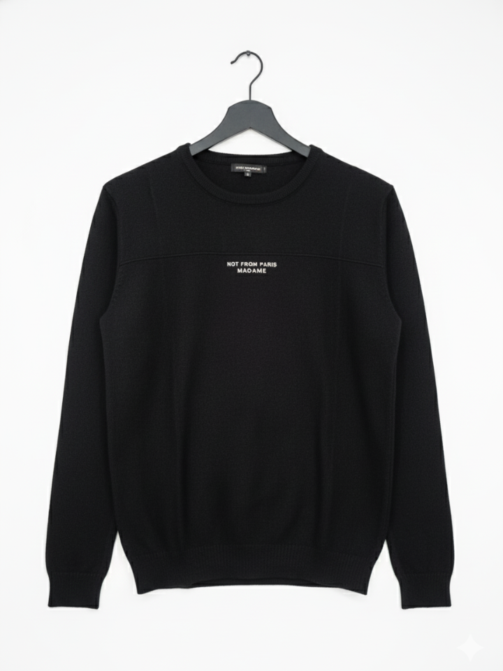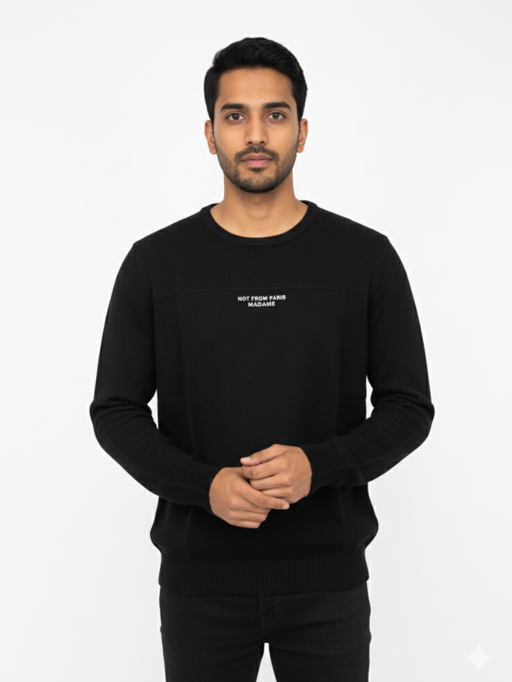 Elevate your style with this sophisticated black knit crewneck sweater, perfect for any occasion.