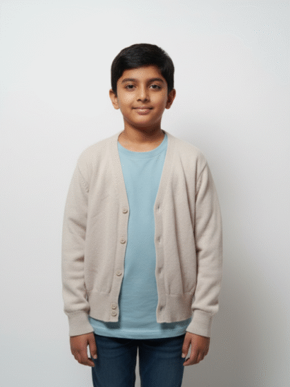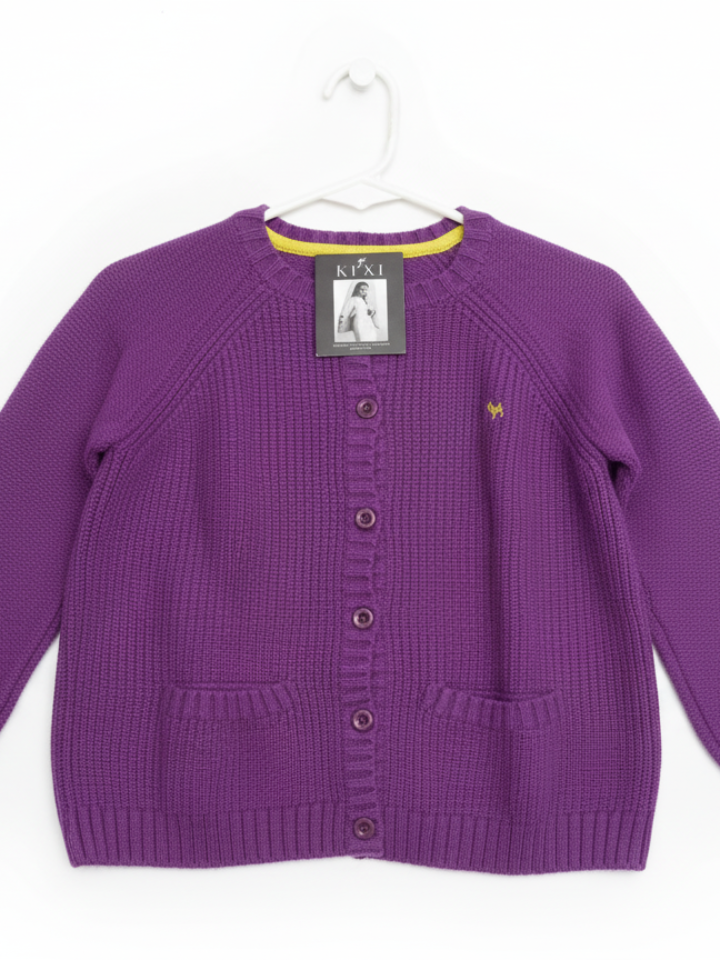 Wrap your child in comfort with this charming purple knit cardigan, perfect for ages 10-11 years. It’s the ideal layering piece for school, casual outings, or just relaxing at home.