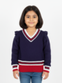 Elevate your child’s wardrobe with this stylish and cozy Knit Ruffle V-Neck Sweater. Designed for comfort and a chic, preppy look, this long-sleeve sweater is perfect for school, casual outings, or special occasions during cooler months.