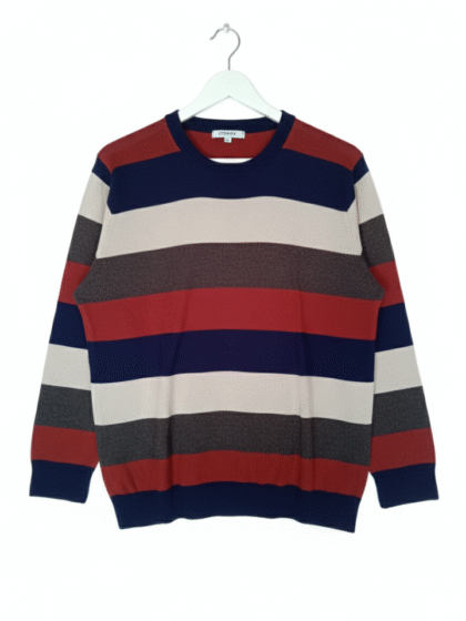 Elevate your casual wardrobe with this sophisticated M-size men’s sweater. Crafted for comfort and style, this piece features a rich dark green body with a distinctive chevron knit pattern, adding texture and depth to the fabric.