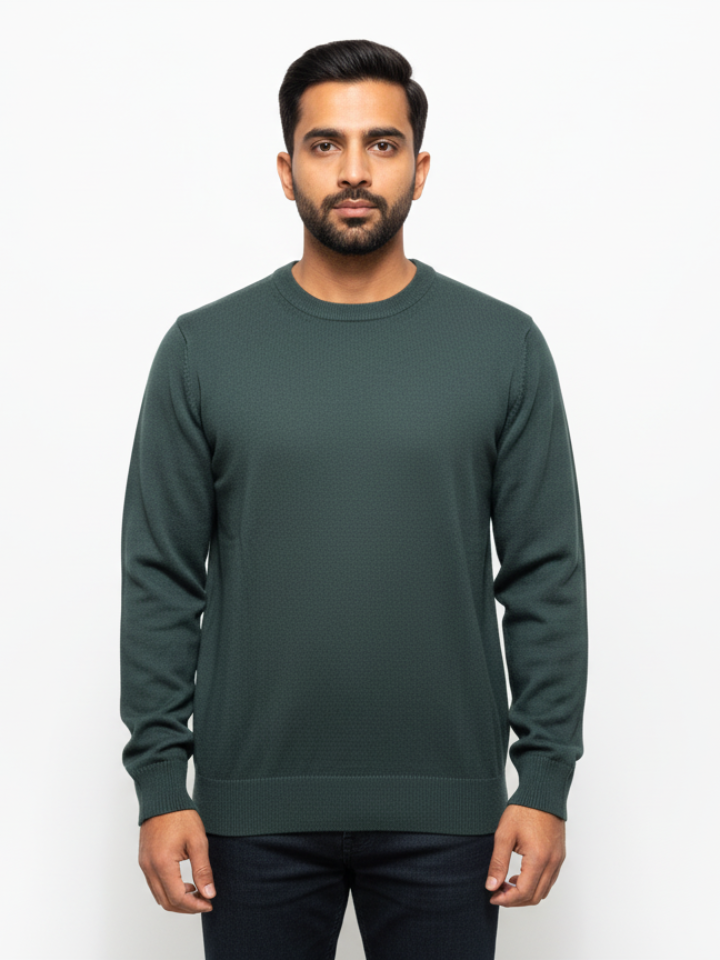 Elevate your everyday style with this versatile and comfortable Men’s Solid Green Crew Neck Sweater. Perfect for layering during cooler seasons or wearing on its own for a sharp, casual look.