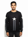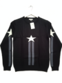 Elevate your casual wardrobe with our stylish Men’s Star Stripe Knit Sweater. Designed for comfort and modern flair, this black sweater features a distinctive white star graphic at the chest, complemented by two vertical grey stripes. Additional white stars adorn the upper sleeves, adding a touch of edgy sophistication.