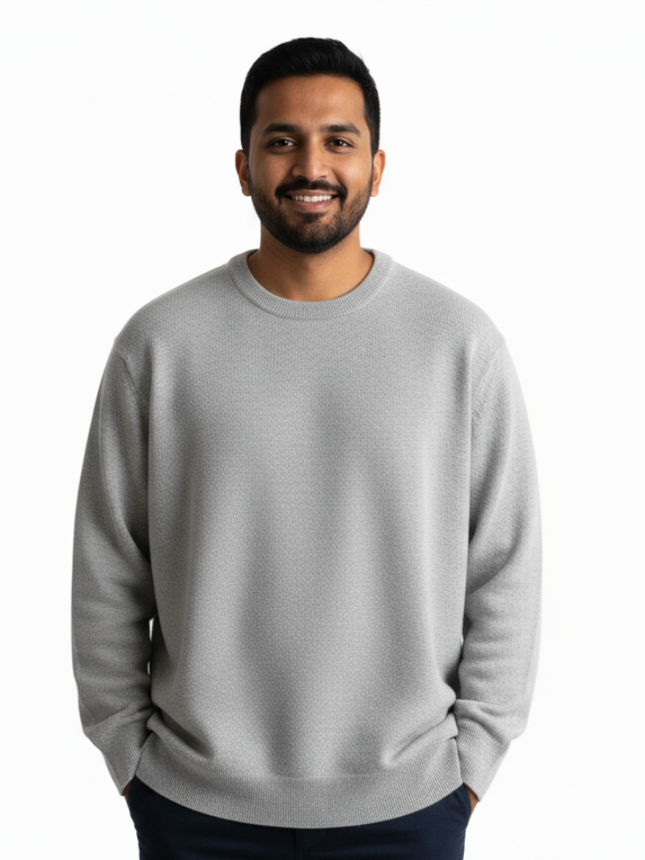 - Ribbed Hems & Cuffs: Durable, elasticated ribbing on the collar, cuffs, and hem ensures a secure fit and helps maintain the sweater’s shape over time.