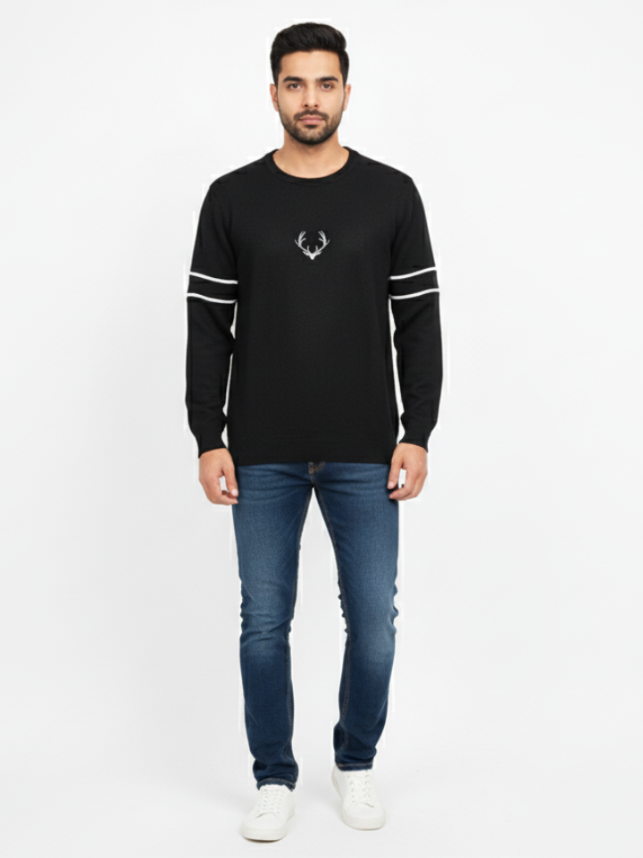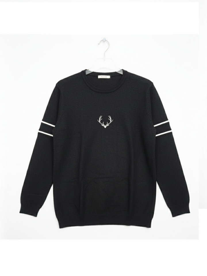 - Design: Modern crew neck with distinctive antler/stag head embroidered logo on the chest.