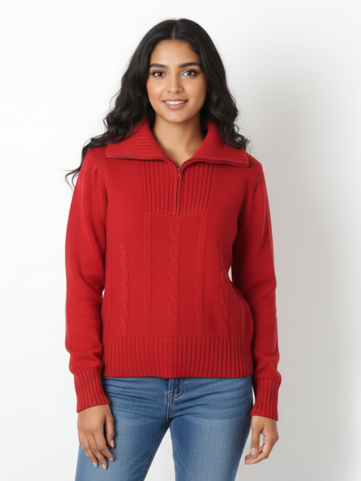- Chic Design: Features a stylish chunky collar and a beautiful half-zip design for easy layering and adjustable warmth.