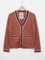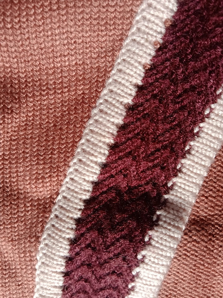 - Contrast Trim: Features eye-catching burgundy/maroon and cream contrasting stripes along the placket, collar, pockets, and cuffs, adding a preppy, vintage collegiate feel.