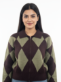 - Classic Argyle Pattern: Featuring a sophisticated brown and sage green argyle design, this jacket adds a touch of preppy elegance to any outfit.