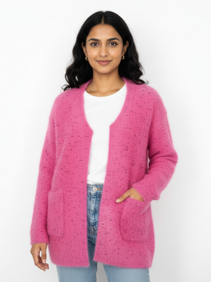 Make a vibrant splash with this stunning Women’s Size L Hot Pink Fuzzy Cardigan! This eye-catching piece features a luxurious, soft-touch knit with a subtle darker speckle detail, creating a gorgeous depth of color in a true magenta/fuchsia shade. It’s the perfect layering piece to bring warmth and a bold dose of color to any outfit.