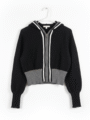 Embrace cozy chic with our M-size women’s winter zipper jacket, designed for both warmth and style. Crafted with a soft, durable knit, this jacket features a classic black body complemented by a fashionable grey ribbed hem and cuffs, ensuring a snug and comfortable fit that retains heat.