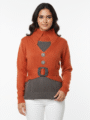 Add a pop of color and style to your winter wardrobe with this Women’s Two-Tone Button Sweater. Crafted in a warm rust orange and brown combination, this medium-size sweater offers a chic and modern look with its decorative front buttons and waist belt accent with a studded buckle.
