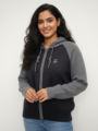 - Stylish Two-Tone Design: Features a chic combination of dark charcoal/black on the main body and a contrasting medium gray on the sleeves and hood, making it easy to pair with any outfit.