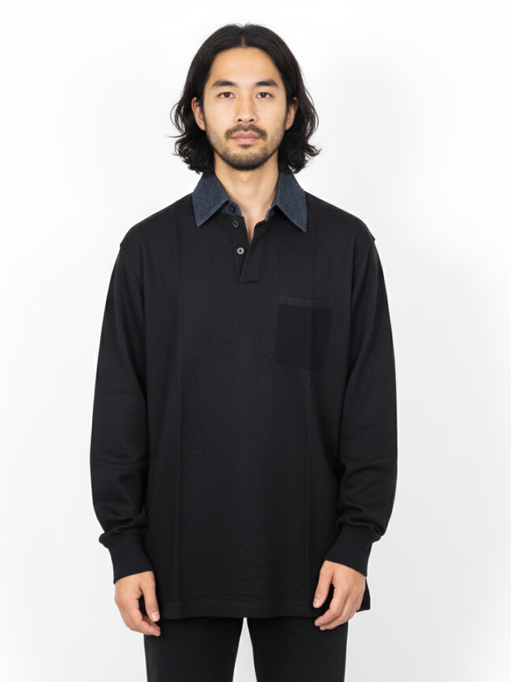 - Color & Design: Classic Black body with a distinctive Navy Blue/Denim Contrast Collar for a modern, refined look.