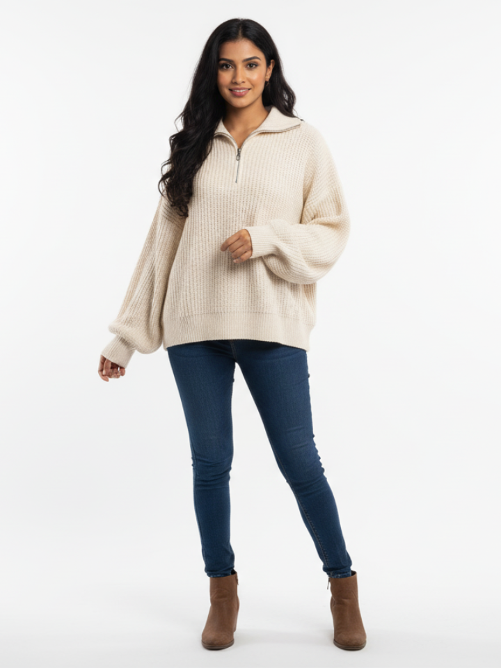 - Chic Half-Zip Design: The high-neck collar with a durable, smooth-gliding zipper offers versatile styling—wear it fully zipped up for maximum warmth, or partially unzipped for a casual, relaxed vibe.